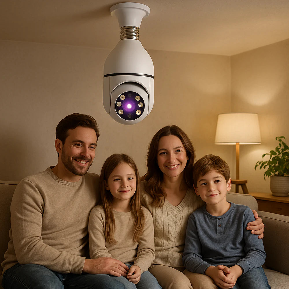 A diferencia de otras, nuestra cámara ofrece visión nocturna clara y comunicación en tiempo real, todo con una instalación fácil como cambiar una bombilla.