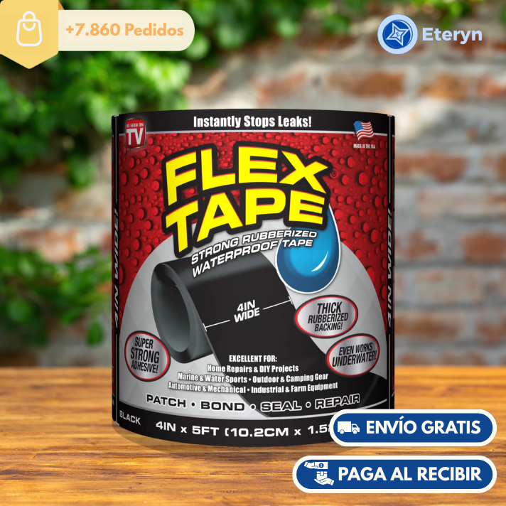 La Flex Tape™ es una cinta adhesiva impermeable de grado industrial diseñada para detener fugas al instante , incluso bajo el agua. Fabricada con una capa de goma engrosada y flexible, se adapta a cualquier superficie, forma o material , brindando un sellado hermético y duradero.