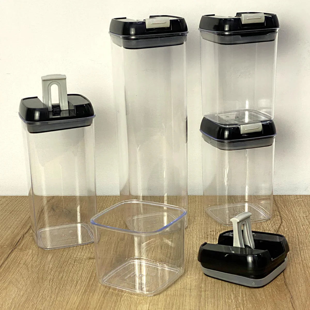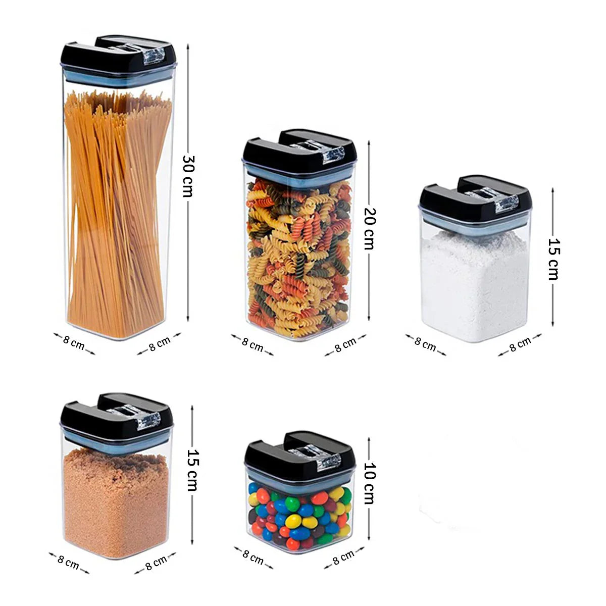 Este práctico set de 5 contenedores herméticos es ideal para almacenar desde pastas y cereales hasta café, snacks o frutos secos. Fabricados con material libre de BPA y diseño transparente, te permiten identificar fácilmente su contenido sin necesidad de abrirlos.